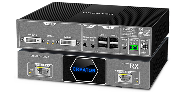 CR-uSF DVI DBU-R是一款2路DVI雙光接收器,支援2路DVI訊號同時輸出,支援4路USB介面,1路RS-232串口,2路光纖LC輸入介面。